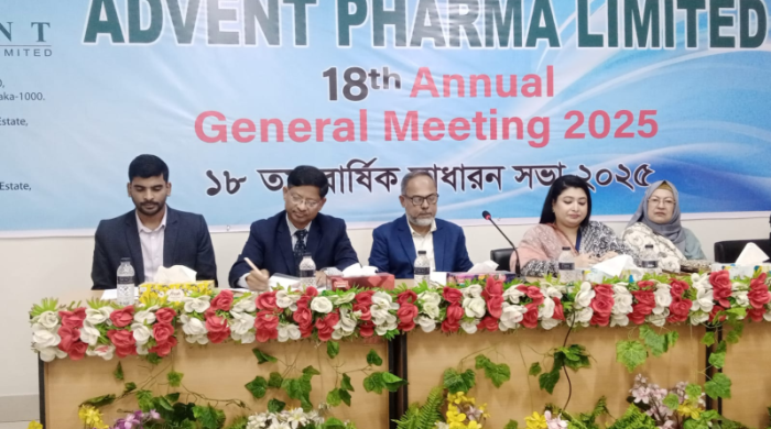 এডভেন্ট ফার্মা লিমিটেডের ১৮ তম বার্ষিক সাধারণ সভা (এজিএম) ৩১-১২- ২০২৫ তারিখে হাইব্রিড সিস্টেমে অনুষ্ঠিত হয়। ফ্যাক্টরিতে কালামপুর ধামরাই সাভার ঢাকা কোম্পানীর চেয়ারম্যান আসিফ ইকবাল চৌধুরী সভায় সভাপতিত্ব করেন। বার্ষিক