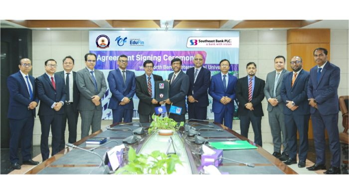 রাজশাহীর নর্থ বেঙ্গল ইন্টারন্যাশনাল ইউনিভার্সিটির সাথে সম্প্রতি একটি সমঝোতা স্মারক স্বাক্ষর করেছে সাউথইস্ট ব্যাংক পিএলসি। ব্যাংকের প্রধান কার্যালয়ে আয়োজিত এই চুক্তির মূল লক্ষ্য হলো শিক্ষা প্রতিষ্ঠানটির জন্য টোটাল এডুকেশন ম্যানেজমেন্ট