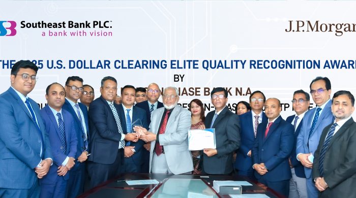 নিজস্ব প্রতিবেদক: সাউথইস্ট ব্যাংক পিএলসি, যুক্তরাষ্ট্রের বৃহত্তম ব্যাংক জে.পি. মরগান চেজ ব্যাংক, এন.এ.-এর “দ্য ২০২৫ ইউ.এস, ডলার ক্লিয়ারিং এলিট কোয়ালিটি রিকগনিশন অ্যাওয়ার্ড ফর আউটস্ট্যান্ডিং অ্যাচিভমেন্ট অব বেস্ট-ইন-ক্লাস” পুরস্কার অর্জন করেছে।