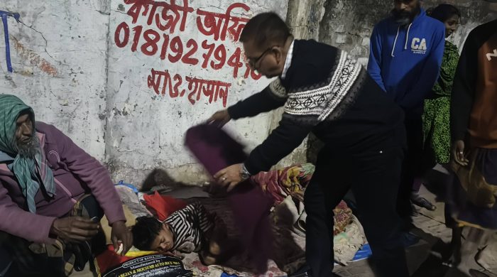“শহর ঘুমিয়ে পড়লেও মানবতা ঘুমায় না। ঢাকার গভীর রাতে অসহায় ও ছিন্নমূল মানুষের পাশে দাঁড়িয়েছে কর্মসংস্থান ব্যাংক—শীতবস্ত্র নয়, উষ্ণতার বার্তা নিয়ে।” কর্মসংস্থান ব্যাংকের পরিচালনা বোর্ডের চেয়ারম্যান ড. এ এফ এম