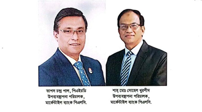 মার্কেন্টাইল ব্যাংক পিএলসি সম্প্রতি তাপস চন্দ্র পাল, পিএইচডি ও শাহ্ মোঃ সোহেল খুরশীদকে উপব্যবস্থাপনা পরিচালক (ডিএমডি) হিসেবে পদোন্নতি প্রদান করেছে। ইতঃপূর্বে তাঁরা এই ব্যাংকের এসইভিপি হিসেবে দায়িত্ব পালন করেছেন। মার্কেন্টাইল