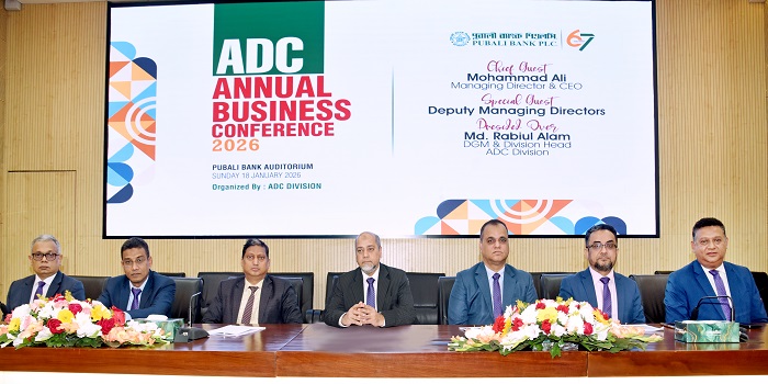 পূবালী ব্যাংক পিএলসি’র এডিসি বিভাগের বার্ষিক বিজনেস কনফারেন্স-২০২৬ ব্যাংকের প্রধান কার্যালয়ের অডিটোরিয়ামে অনুষ্ঠিত হয়েছে। রোববার (১৮ জানুয়ারি) অনুষ্ঠিত সম্মেলনে প্রধান অতিথি হিসেবে উপস্থিত ছিলেন পূবালী ব্যাংকের ব্যবস্থাপনা পরিচালক ও প্রধান