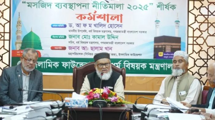 অন্তর্বর্তী সরকারের ধর্ম উপদেষ্টা ড. আ ফ ম খালিদ হোসেন বলেছেন, সকল অংশীজনের মতামতের ভিত্তিতে গ্রহণযোগ্য একটি মসজিদ ব্যবস্থাপনা নীতিমালা প্রণয়ন করা হচ্ছে, যাতে ইমাম মুয়াজ্জিনদের স্বার্থ সংরক্ষিত থাকবে। এ