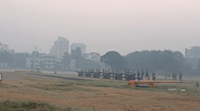 মহান বিজয়ের ৫৪ বছর উদযাপনে সূর্যোদয়ের সঙ্গে সঙ্গে ৩১ বার তোপধ্বনিতে যথাযোগ্য সামরিক মর্যাদায় বিজয় দিবসের সূচনা হয়েছে। মঙ্গলবার (১৬ ডিসেম্বর) ভোরে রাজধানীর পুরাতন বিমান বন্দরে বাংলাদেশ সেনাবাহিনীর একটি আর্টিলারি