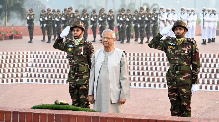 মহান বিজয় দিবসে জাতীয় স্মৃতিসৌধে বীর শহীদদের প্রতি শ্রদ্ধা জানিয়েছেন প্রধান উপদেষ্টা ড. মুহাম্মদ ইউনূস। মঙ্গলবার (১৬ ডিসেম্বর) সকাল ৬টা ৫৭ মিনিটের দিকে ফুল দিয়ে বীর শহীদদের প্রতি শ্রদ্ধা জানান।