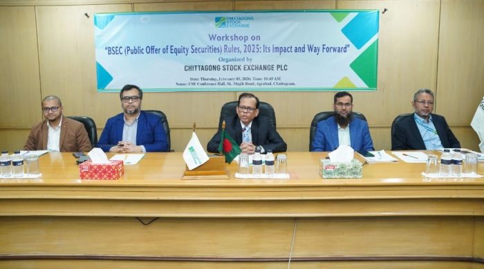চিটাগং স্টক এক্সচেঞ্জ পিএলসি (সিএসই)-এর চট্টগ্রামস্থ প্রধান কার্যালয়ে “BSEC (Public Offer of Equity Securities ) Rules, 2025 : Its Impact and Way Forward” বিষয়ক কর্মশালা অনুষ্ঠিত হয়েছে। এতে পুঁজিবাজারে তালিকাভুক্ত,