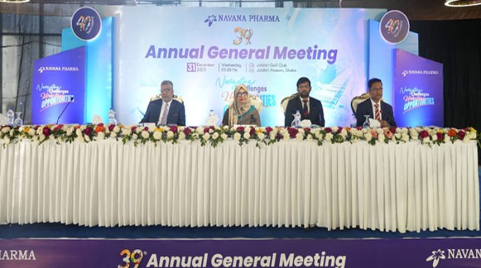 নাভানা ফার্মাসিউটিক্যালস পিএলসি’র ৩৯তম বার্ষিক সাধারণ সভা ৩১ ডিসেম্বর ২০২৫ তারিখে হাইব্রিড পদ্ধতিতে অনুষ্ঠিত হয়। সভায় শেয়ারহোল্ডারগণ ৩০ জুন ২০২৫ সমাপ্ত বছরের জন্য ১৪ শতাংশ নগদ লভ্যাংশ অনুমোদন করেন। বৃধবার