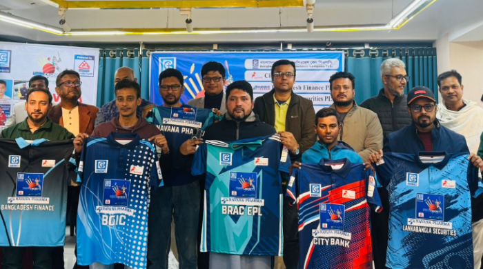 রাজধানীর পুতুলবাড়ি রেস্টুরেন্টে জাঁকজমকপূর্ণ আয়োজনের মধ্য দিয়ে অনুষ্ঠিত হয়েছে শেয়ারবাজার করপোরেট ক্রিকেট সিজন–৫ এর জার্সি উন্মোচন ও খেলার লটারি অনুষ্ঠান। শনিবার (২৭ ডিসেম্বর) আয়োজিত এই অনুষ্ঠানে শেয়ারবাজার সংশ্লিষ্ট করপোরেট প্রতিষ্ঠান,
