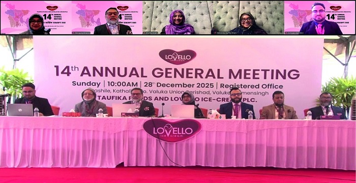 পুঁজিবাজারে তালিকাভুক্ত খাদ্য ও আনুষঙ্গিক খাতের কোম্পানি তাওফিকা ফুড্স এন্ড লাভেলো আইসক্রিম পিএলসির ১৪তম বার্ষিক সাধারণ সভা (এজিএম) অনুষ্ঠিত হয়েছে। রোববার (২৮ ডিসেম্বর) সকাল ১০টায় ময়মনসিংহের ভালুকায় কোম্পানির নিবন্ধিত অফিস